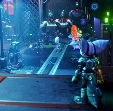 If you’ve ever wanted to vaporize cyber-gators with a gun that turns them into topiary, congratulations. You are the target audience. Rift Apart’s weapons are gloriously stupid in the best way, fungus-launching turrets, pixelators, doom-blades that whirl around like caffeinated beyblades. It’s a sandbox full of Looney Tunes-level mayhem, and the controls are as tight as a bank vault full of Red Bull. That said, the combat’s sugar rush starts to feel a little samey around hour X. You’re dodging, shooting, upgrading, switching between seventeen weapons mid-fight, and while it’s slick and polished, the strategy rarely changes. Enemies are basically cardboard cutouts with flamethrowers. The game throws more at you, but it never asks more of you. No learning curve. Just more curveballs. Exploration, meanwhile, is like walking through an IKEA showroom designed by aliens. Planets are gorgeous, but mostly linear. Hidden pockets and side-quests exist, but they’re the kind your dad would call “nice distractions” while checking his watch. The rift mechanic, which lets you teleport across space like a Marvel intern with a grappling hook, sounds cooler than it is. You don't control dimensions so much as you tug at pre-placed ziplines made of wormholes.